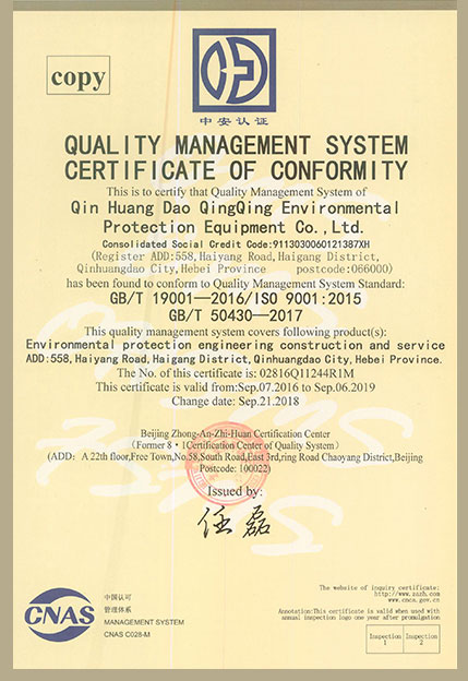 質(zhì)量管理體系認證正本英文