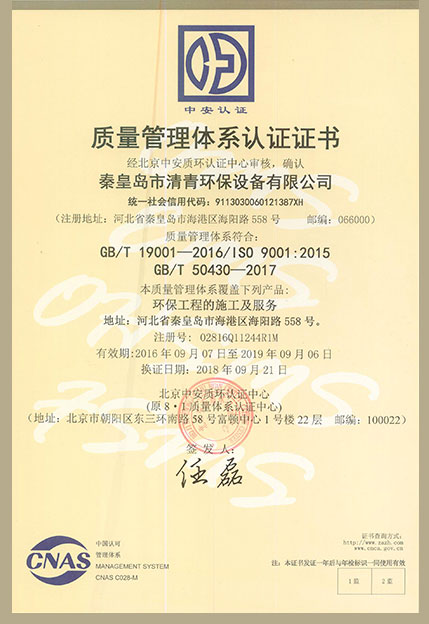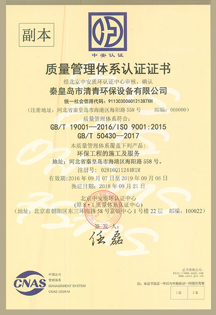 質(zhì)量管理體系認證正本中文