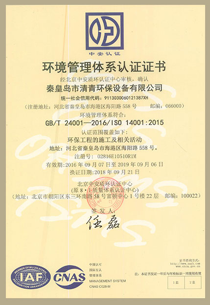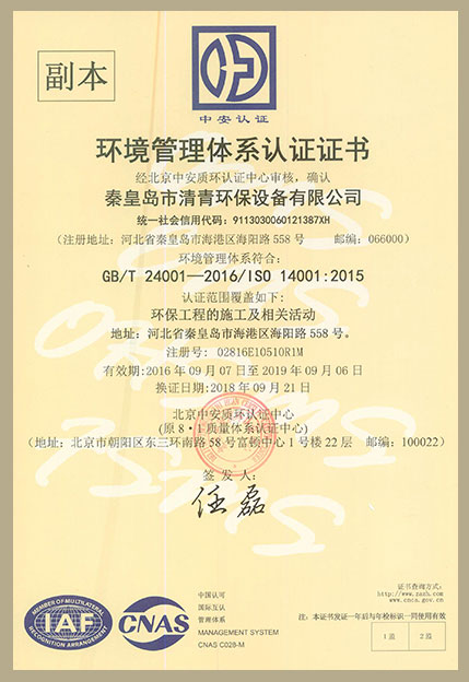 環(huán)境管理體系認證正本中文